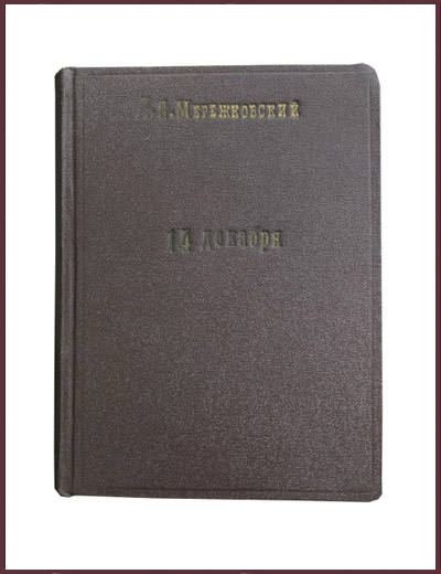 14 декабря. С.-Петербург. 1918 г. 196 стр. 160 х 210 мм. Старинная книга в ледериновом переплете с золотым тиснением по корешку и обложке. Трехсторонний тонированный (красный) обрез. Хорошая сохранность. Блок преимущественно чистый. Редкие следы залития страниц. Следы владельческой реставрации шмуцтитула, стр. 15-16; 47-48; 65-66; 176-178; 191-195. Помета ручкой на нахзаце. Первое издание. "14 декабря" (первоначально как "Николай I и Декабристы") - заключительная часть трилогии "Царства зверя", которая рассказывает о восстании декабристов в 1825 году.