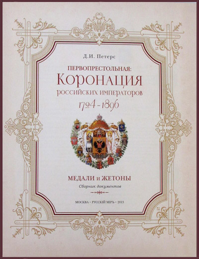 В подарочной книге Первопрестольная: коронация российских императоров 1724-1896 гг. также рассказывается об учреждении и изготовлении особой медали "За служение во время коронации", которую жаловали "вместо подарков". Впервые приводятся архивные документы о медальере Рейбише, условиях работы медальеров и оплате их труда; вводятся в научный оборот сведения о коронационных медалях с ушками (для ношения) в правления императриц Елизаветы Петровны и Екатерины II, о существовании которых до настоящего времени не было известно специалистам и экземпляры которых не сохранились даже в музейных собраниях.