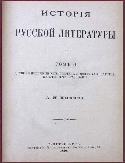 Комплект из трех антикварных книг. Кожаные корешки, обложки обтянуты тканью. Имеются незначительные повреждения обложек. Состояние книжных блоков очень хорошее. Прижизненное издание автора. К сожалению, не хватает 4-го тома. Содержание томов: Том I. Древняя письменность. VII, 484 стр. Том II. Древняя письменность. Времена Московского царства. Канун преобразований. VI, 566 стр. Том III. Судьбы народной поэзии. Эпоха преобразований Петра Великого. Установление новой литературы. Ломоносов. X, 535 стр. "История русской литературы" - работа, оказавшая большое влияние на русское литературоведение. Литературу автор считает выражением народного самосознания, прослеживая большую роль, сыгранную ей в воспитании русского общества с самых древних времен.