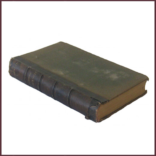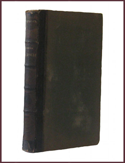 Антикварная книга с кожаным корешком,бинты и золотое тиснение. Обложка выполнена из ледерина. Есть небольшие временные пятна, но в целом состояние старинной книги очень приличное.