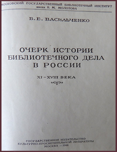 Очерк истории библиотечного дела в России XI-XVIII века (1948 г.)