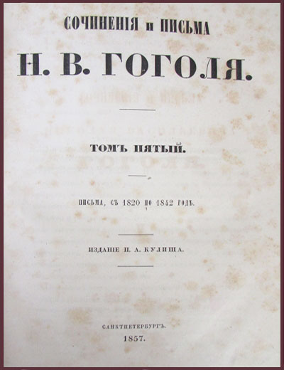 Сочинения и письма Гоголя Н.В., т.5, письма 1820-1842 гг. (1857 г.)