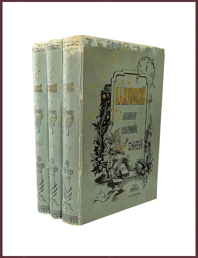 Комплект из трех антикварных книг (четвертая книга отсутствует) в издательском переплете. На обложке есть небольшие потертости. Т.1: переплетные крышки отошли от блока. Первый том содержит фронтиспис с портретом Жуковского, гравированным на стали, и его факсимиле. В него также вошли биографический очерк и примечания, составленные профессором Архангельским А.С., выдающимся филологом и литературоведом. В основу данного издания легло последнее, пятое издание сочинений Жуковского, вышедшее при его жизни и редактированное им самим.