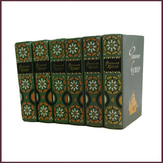 Комплект из шести букинистических книг в издательских переплетах, представляющий собой собрание сочинений классика приключенческой литературы Джеймса Феминора Купера. С портретом автора и увлекательными иллюстрациями. Оформление художника Зусмана Л.П. Комплект в хорошем состоянии оценивался советскими букинистами в 35-45 рублей. Содержание томов: Т. 1. "Зверобой, или Первая тропа войны", "Последний из могикан, или Повествование о 1757 годе"; Т. 2. "Следопыт, или На берегах Онтарио", "Пионеры, или У истоков Саксуиханны"; Т. 3. "Прерия", "Шпион"; Т. 4. "Осада Бостона, или Лайонел Линколь", "Лоцман"; Т. 5. "Браво", "Морская волшебница"; Т. 6. "Мерседес Кастилии, или Путешествие в Катай", "Красный корсар".