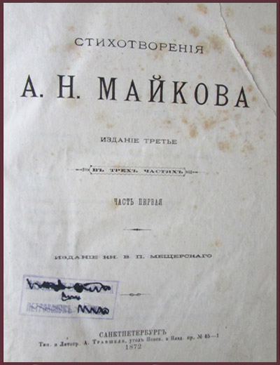Стихотворения Майкова А.Н., т.1 (1872 г.)
