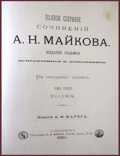 Полное собрание сочинений Майкова А.Н. в 4 томах, тт. 1-3 (1901 г.)