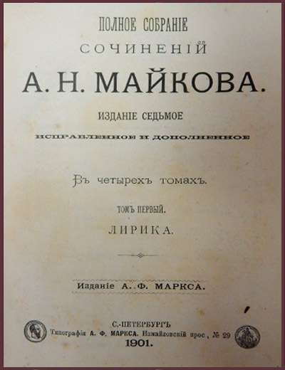 Полное собрание сочинений Майкова А.Н. в 4 томах (1901 г.)