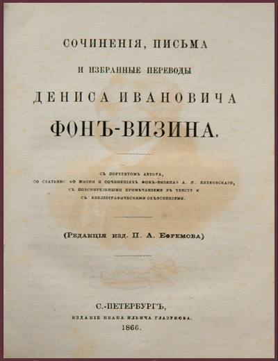 Сочинения, письма и избранные переводы Фонвизина Д.И. (1866 г.)