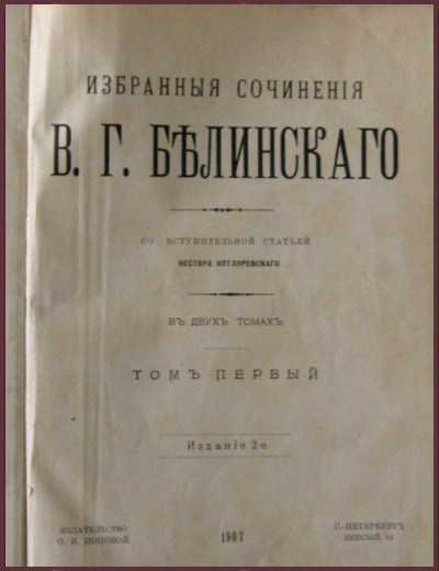 Избранные сочинения Белинского В.Г. в 2-х томах, т.1 (1907 г.)