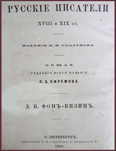 Денис Иванович Фонвизин. Сочинения, письма и избранные переводы (1866 г.)
