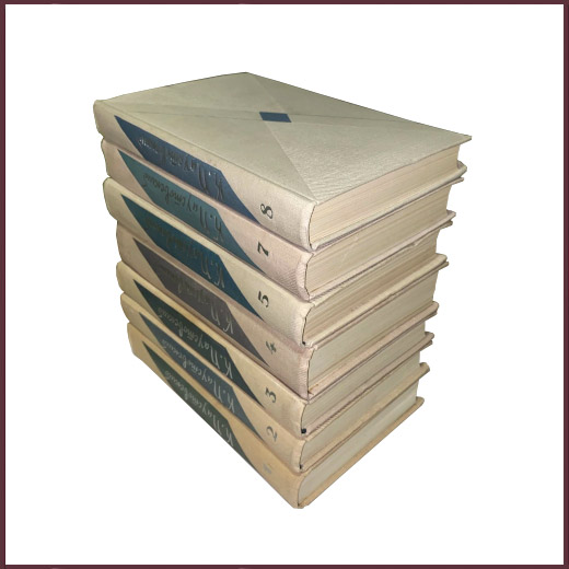 Паустовский К.Г. Комплект из семи букинистических книг в издательских переплетах. Нет 6 тома. Хорошее состояние. Крепкий блок. Твердый тканевый переплет. В советских букинистических магазинах стоимость полного комплекта доходила до 20 рублей. Содержание томов: Том 1. "Романтики", "Блистающие облака" , а также повести "Кара-Бугаз" и "Колхида". Том 2. "Черное море", "Северная повесть" и роман "Дым Отечества". Том 3. "Повесть о лесах", "Героический юго-восток", "Золотая роза". Том 4. "Далекие годы", "Беспокойная юность", "Начало неведомого века". Том 5. "Время больших ожиданий", "Бросок на юг", "Книга скитаний". Том 6. Маленькие повести и рассказы 1922-1940 гг. Том 7. Пьесы, рассказы, сказки 1941-1966 гг. Том 8. Литературные портреты, очерки, заметки. Издательство: "Художественная литература" (Москва) Язык: русский Сохранность книги: хорошая Год издания: 1968 Число страниц: 4374 Формат книги: 135 х 200 мм Твердый переплет Паустовский Константин Георгиевич (1892-1968 гг.) - русский советский писатель, сценарист и педагог, журналист, военный корреспондент. Книги Константина Паустовского неоднократно переводились на многие языки мира. Во второй половине XX века его повести и рассказы вошли в российских школах в программу по русской литературе для средних классов как один из сюжетных и стилистических образцов пейзажной и лирической прозы. Четыре раза был номинирован на Нобелевскую премию по литературе.
