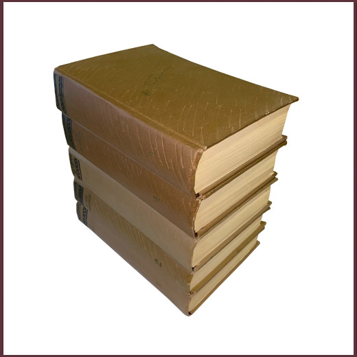 Гарин-Михайловский Н.Г. Комплект из пяти букинистических книг в твердых издательских переплетах. В отличие от полного собрания сочинений Гарина, вышедшего в 1916 году в 20 книгах в качестве приложения к журналу "Нива" (Петроград, т-во Маркса А.Ф.) данное собрание сочинений не является полным. Оно было напечатано Гослитиздатом в 1957-1958 годах в 5-ти томах. Подготовка текста и примечания Воробьевой И.В. Вступительная статья Борисовой В.А. Т. 1-5. М., Гослитиздат. 1957-1958 гг. Цена полного комплекта в советских букинистических магазинах составляла 15 рублей. Содержание томов: Т. 1. Детство Темы.- Гимназисты. 1957 г. 522 стр., 1 л. портр. Т. 2. Студенты.- Инженеры. 1957 г. 563 стр. Т. 3. Очерки и рассказы. 1888-1895. 1957 г. 623 стр. Т. 4. Очерки и рассказы. 1895-1906. 1958 г. 723 стр. Т. 5. По Корее, Манджурии и Ляодунскому полуострову [и др.]. 1958 г. 719 стр. Издательство: Государственное издательство Художественной литературы (Москва) Язык: русский Сохранность книги: Год издания: 1957 Число страниц: 3504 Формат книги: 130 х 200 мм Твердый переплет Николай Георгиевич Михайловский (1852-1906 гг.) - русский инженер, писатель и путешественник, который публиковался под псевдонимом Н. Гарин. На литературное поприще Николай Михайловский вступил в 40 лет с выходом в свет автобиографической повести "Детство Темы" и рассказа "Несколько лет в деревне". В "Русском богатстве" он напечатал затем "Гимназисты" (продолжение "Детства Темы"), "Студенты" (продолжение "Гимназистов"). Последняя часть тетралогии - "Инженеры" - была опубликована в 1907 году, уже после смерти автора. Вся тетралогия многократно переиздавалась в советское и более позднее время. "Деревенские панорамы" и другие рассказы вышли отдельно под заглавием "Очерки и рассказы" (Петербург, 1893-1895 гг.). Как специалист-инженер, Николай Георгиевич горячо отстаивал в "Новом времени", "Русской жизни" и других изданиях постройку дешевых железных дорог. Путешествия по Дальнему Востоку описаны в путевых заметках "По Корее, Маньчжурии и Ляодунскому полуострову" (1899 г.). В том же году увидели свет "Корейские сказки", которых должно было выйти ровно 100, но из-за потери одной тетради с записями число сказок сократилось до 64...