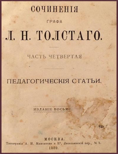 Сочинения графа Л.Н.Толстого, ч.4, "Педагогические статьи" (1889 г.)