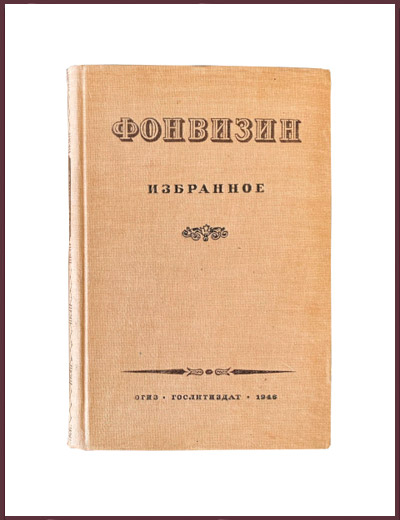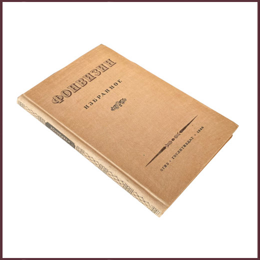Букинистическая книга в твердом составном переплете. Тиснение по корешку. Верхний тонированный обрез. Крепкий блок. В хорошем состоянии. С портретом Дениса Ивановича Фонвизина. Подготовка и комментарий Светлова Л.Б. Общая редакция профессора Бродского Н.Л. В букинистическое издание вошли избранные произведения и письма Фонвизина.
