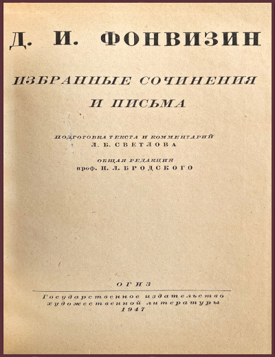 Избранные сочинения и письма. Фонвизин Д.И. (1947 г.)