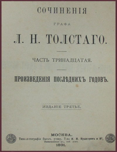 Сочинения графа Толстого Л.Н., т.13. Произведения последних годов (1891 г.)
