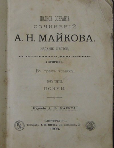 Полное собрание сочинений Майкова А.Н. в 3 томах, т.3 (1893 г.)