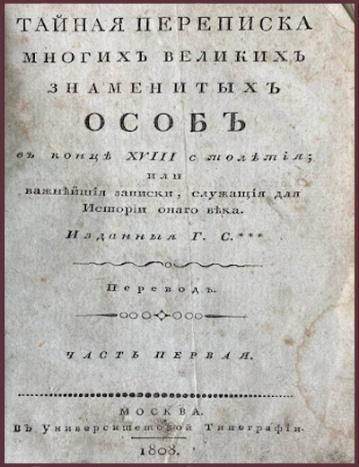 Тайная переписка многих великих знаменитых особ в конце XVIII столетия; или важнейшие записки, служащие для истории онаго века, изданные Г.С. (1808 г.)